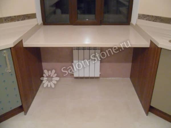 Прочностные характеристики данного материала позволяют использовать его для того, чтобы изготовить подоконник столешницу в комнате на заказ. Показатели пластичности акрилового камня на стадии производства весьма высоки, благодаря чему становится возможным создание конструкций любой формы без швов.